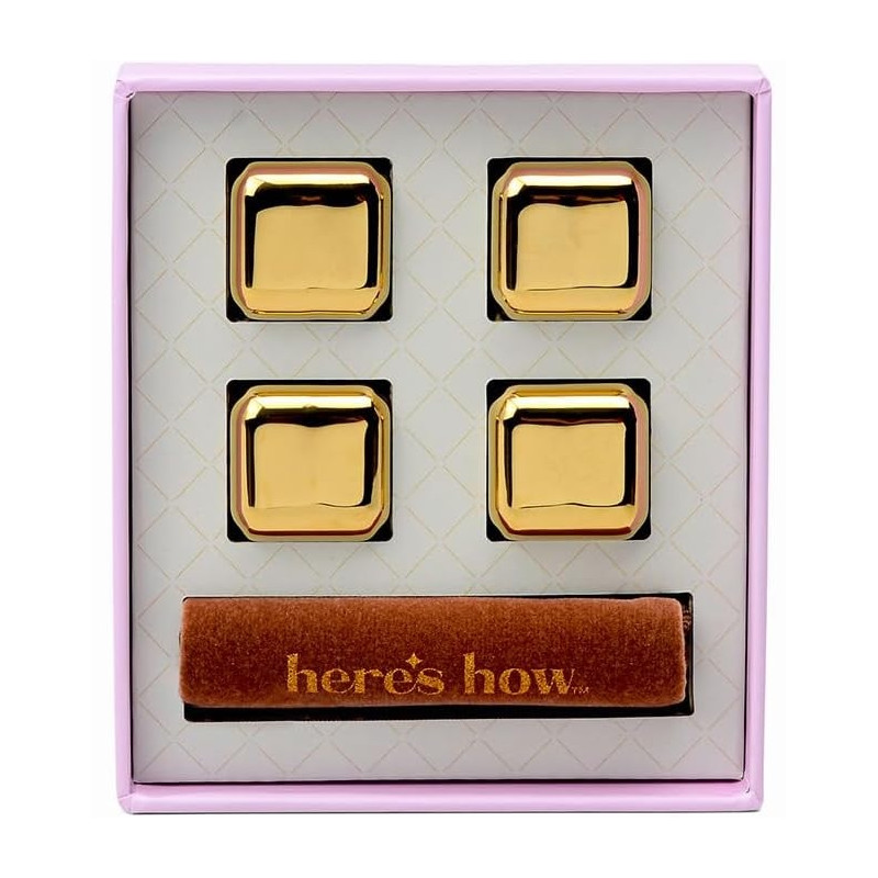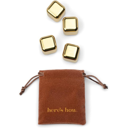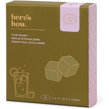 Les Ruby Cubes de Here’s How sont parfaits pour rafraîchir un cocktail, un spiritueux ou toute autre boisson sans la diluer. Une belle alternative aux glaçons classiques : vous gardez votre boisson bien fraîche tout en préservant son goût. Leur finition dorée apporte aussi une touche élégante au moment du service.