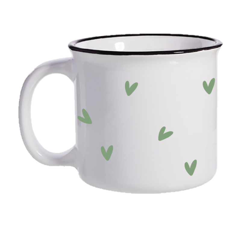 Timbale Céramique Vintage Bord Noir - Coeurs Vert Sauge