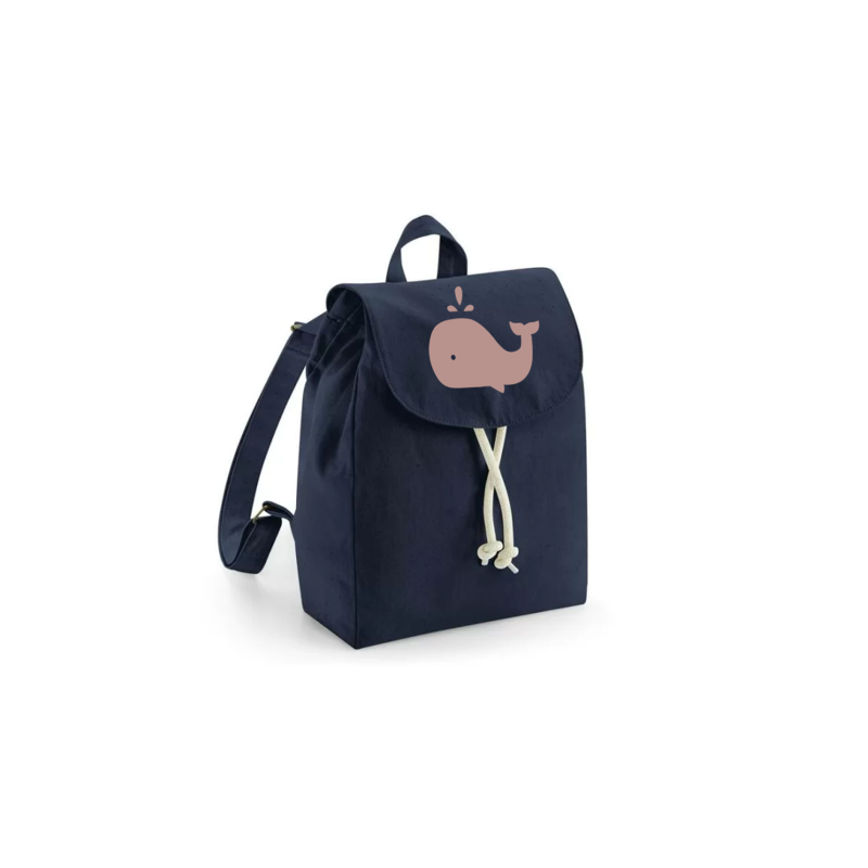 Sac À Dos Enfant - Coton Bio Bleu Marine - Baleine - Plusieurs Coloris Disponibles
