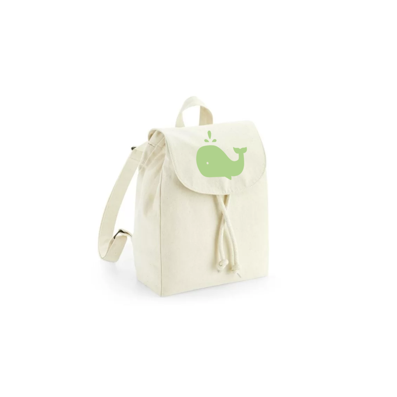 Sac À Dos Enfant - Coton Bio Beige - Baleine - Plusieurs Coloris Disponibles